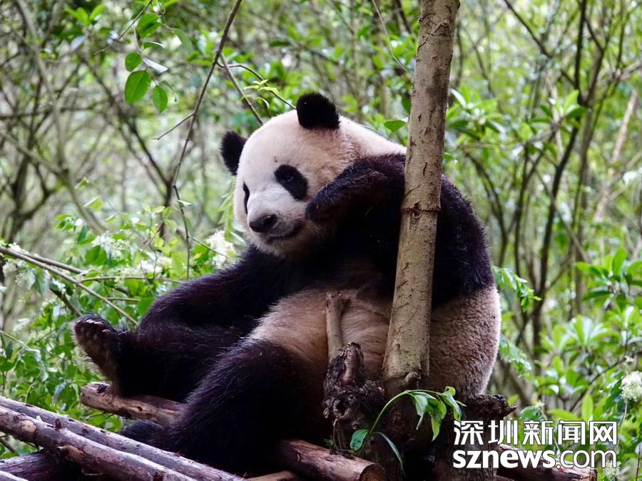 5月26日在中國(guó)大熊貓保護(hù)研究中心臥龍神樹(shù)坪基地的“熊貓幼兒園”內(nèi)拍攝的大熊貓。