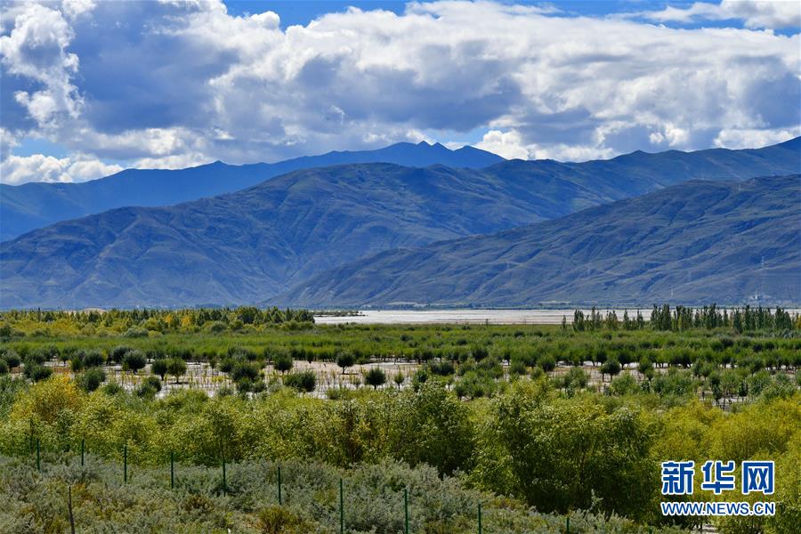 雅魯藏布江山南段的防護林(9月15日攝)。 新華社記者 張汝鋒 攝