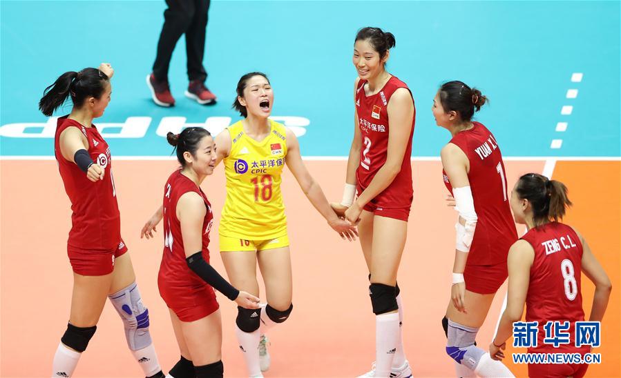 9月22日,中國隊球員在比賽中慶祝得分。當日,在日本札幌舉行的2019年女排世界杯賽第二階段A組循環(huán)賽中,中國隊以3比2戰(zhàn)勝巴西隊。新華社記者杜瀟逸攝