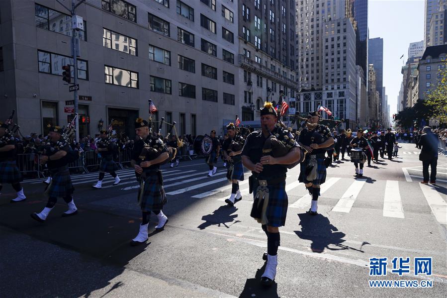 10月14日,在美國紐約曼哈頓第五大道,人們參加哥倫布日游行。當(dāng)天,紐約舉行哥倫布日游行,紀(jì)念意大利航海家克里斯托弗·哥倫布首次到達(dá)美洲大陸。哥倫布日游行也是美國最大的展示意大利文化傳統(tǒng)的慶?;顒?dòng)。新華社記者李木子攝