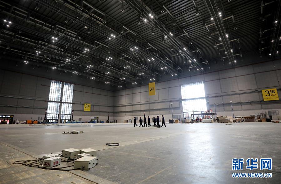 10月25日,在展館內(nèi),展臺框架搭建工作正在進(jìn)行。 新華社記者 方喆攝