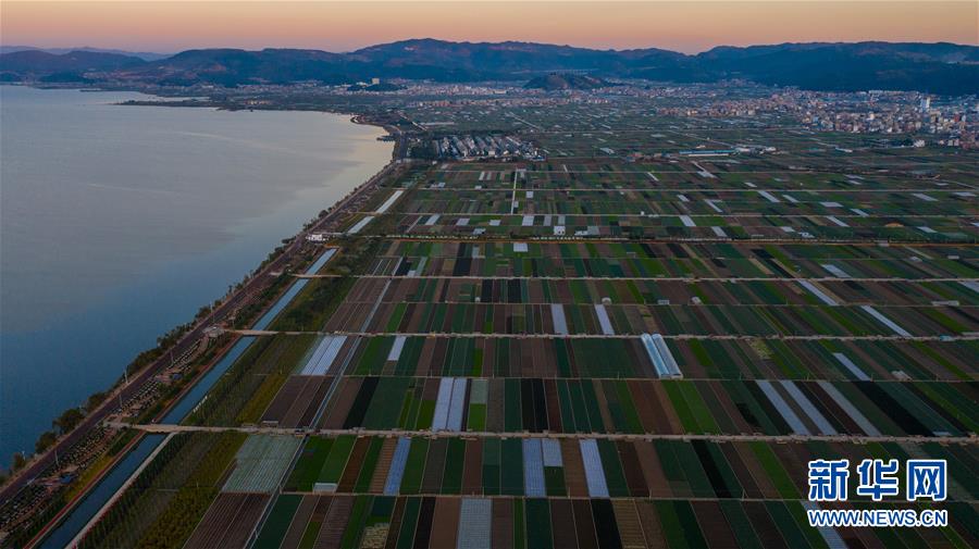 這是云南省玉溪市通海縣的田園風光(11月23日無人機拍攝)。初冬時節(jié),云南省玉溪市通海縣風景秀麗,山巒、湖水與農(nóng)田組成了一幅美麗的田園詩畫卷。新華社記者胡超攝