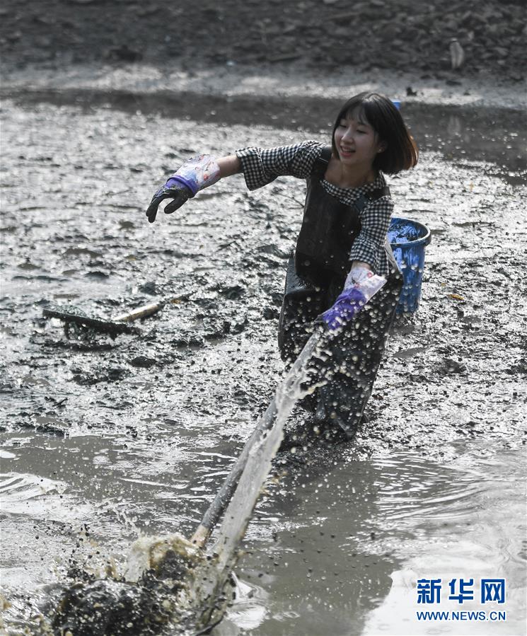 11月24日,游客在西溪濕地體驗“干塘”捕魚。近日在杭州西溪國家濕地公園,漁夫們抽掉塘水清理淤泥,一批游客借用漁夫們的下水褲,體驗“干塘”捕魚。“干塘”是杭州西溪一帶村民的傳統生產習俗,漁戶在冬季將魚塘內的水抽掉,清挖淤泥,以便第二年可以更好地養(yǎng)魚。新華社記者黃宗治攝