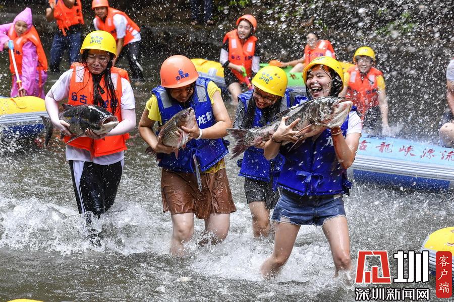8月1日泄洪時,工作人員發(fā)現(xiàn)不少大魚隨著水庫泄洪水集體“越獄”,沿著漂流河道一路飛奔脫逃。