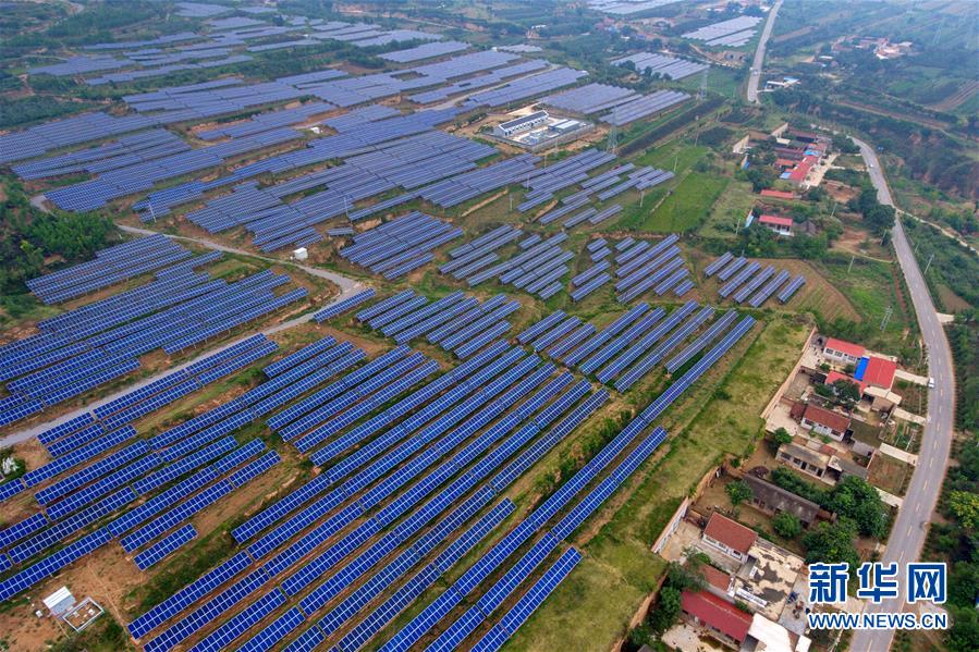 這是7月5日拍攝的山西省運城市芮城縣光伏領跑技術基地(無人機拍攝)。 新華社記者曹陽攝