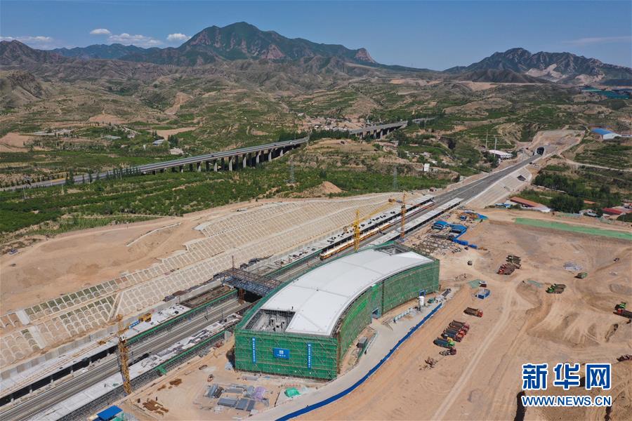 建設(shè)中的京張高鐵下花園北站(5月29日無人機(jī)拍攝)。京張高鐵下花園北站是連接京張高鐵和崇禮鐵路的樞紐站,位于下花園城區(qū)北側(cè)偏東,站場規(guī)模設(shè)2站臺(tái)5線。目前,下花園北站主體建設(shè)已完工,正在進(jìn)行內(nèi)外部裝修。新華社記者邢廣利攝