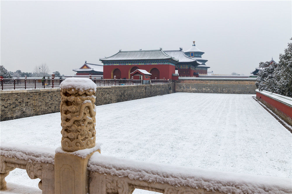 2019年11月30日,北京,初雪過(guò)后,天壇公園銀裝素裹,白雪古建相互映襯,景色迷人。時(shí)永平/千龍圖像/視覺(jué)中國(guó)