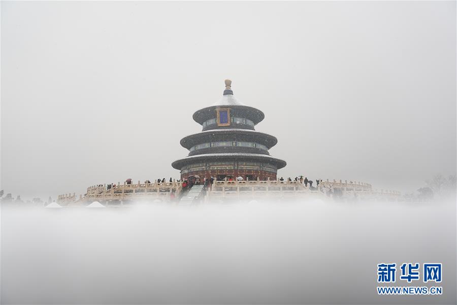 12月16日拍攝的雪中的天壇公園祈年殿。當(dāng)日,北京迎來(lái)降雪天氣。新華社記者鞠煥宗攝
