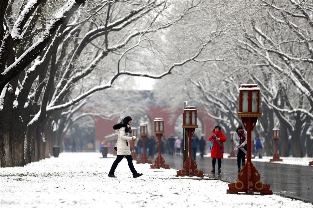 2019年11月30日,北京,天壇公園里觀雪賞景的市民絡(luò)繹不絕。喬?。垐D像/視覺(jué)中國(guó)