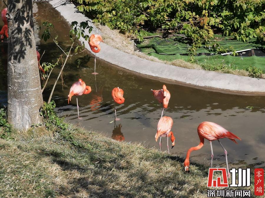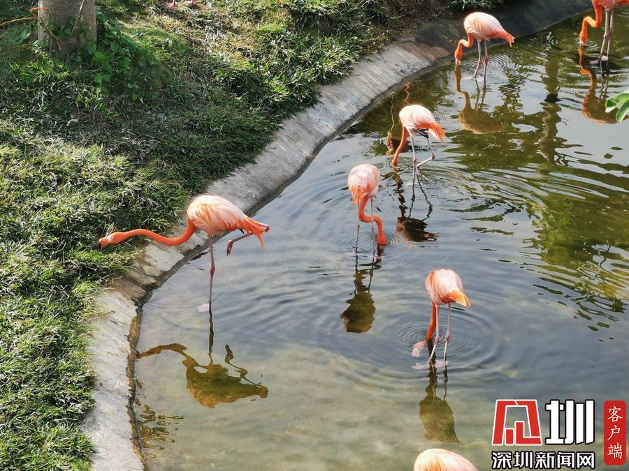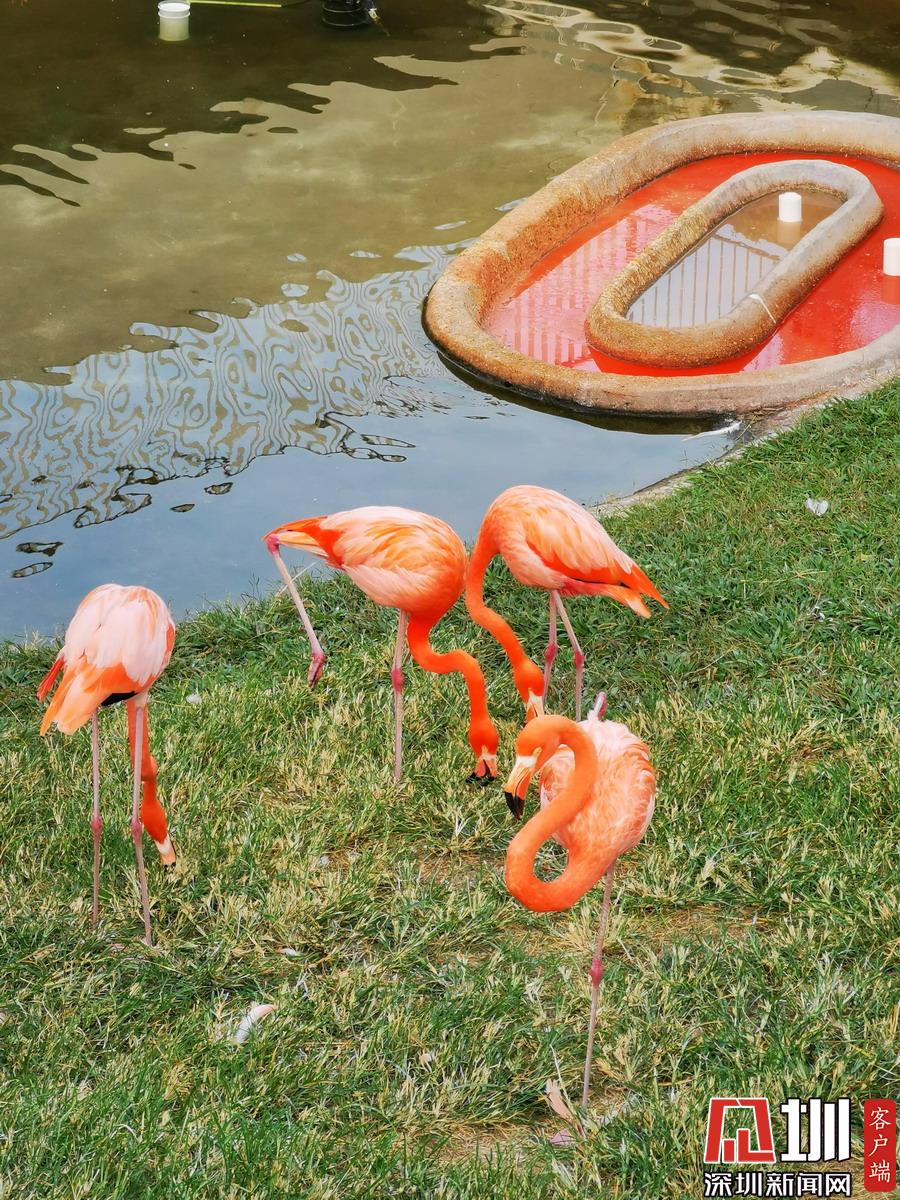 基因庫外面有下沉式水塘,一群火烈鳥在這里展示牠們鮮艷的羽毛和精廋的長腿。鄭曉鵬攝