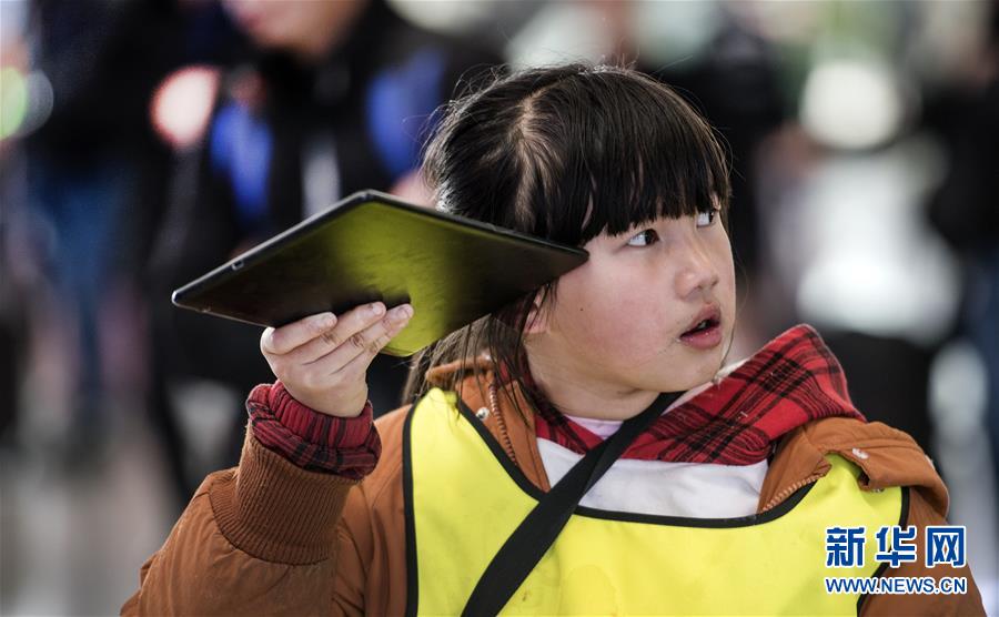 1月14日,一位小朋友在西安北站候車大廳與家人通話。路再遠(yuǎn)、再艱辛,也擋不住回家的腳步。在西安北站的每一個角落,處處充滿溫情和歸鄉(xiāng)的盼望。連日來,西安北站日均發(fā)送旅客12.1萬人次,一列列春運的列車,載著中國人的鄉(xiāng)愁,駛向遠(yuǎn)方。新華社記者陶明攝