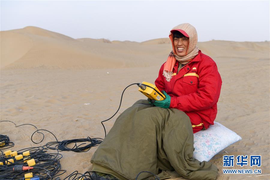 查線工王秋玲在檢測(cè)待用的檢波器(1月14日攝)。新華社記者 丁磊 攝