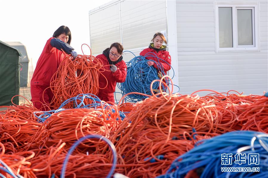 修線女工將修好的采集電纜搬到待用區(qū)(1月15日攝)。 新華社記者 丁磊 攝