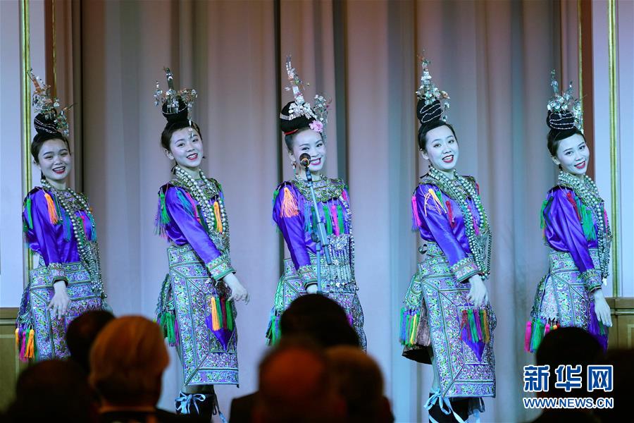 1月15日,在德國柏林,貴州省歌舞劇院藝術(shù)團(tuán)的演員在晚會(huì)上表演。 15日晚,2020年“歡樂春節(jié)”新春文藝晚會(huì)在德國柏林的紅色市政廳上演,中德兩國各界代表觀看演出,共慶中國農(nóng)歷新年。 新華社記者 王勍 攝