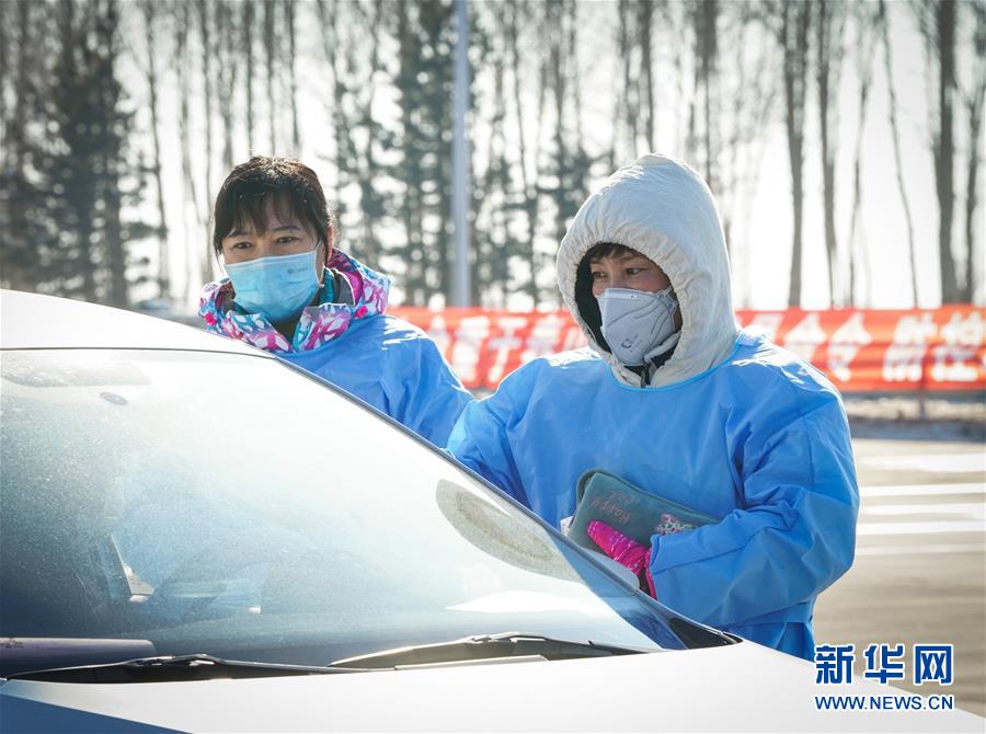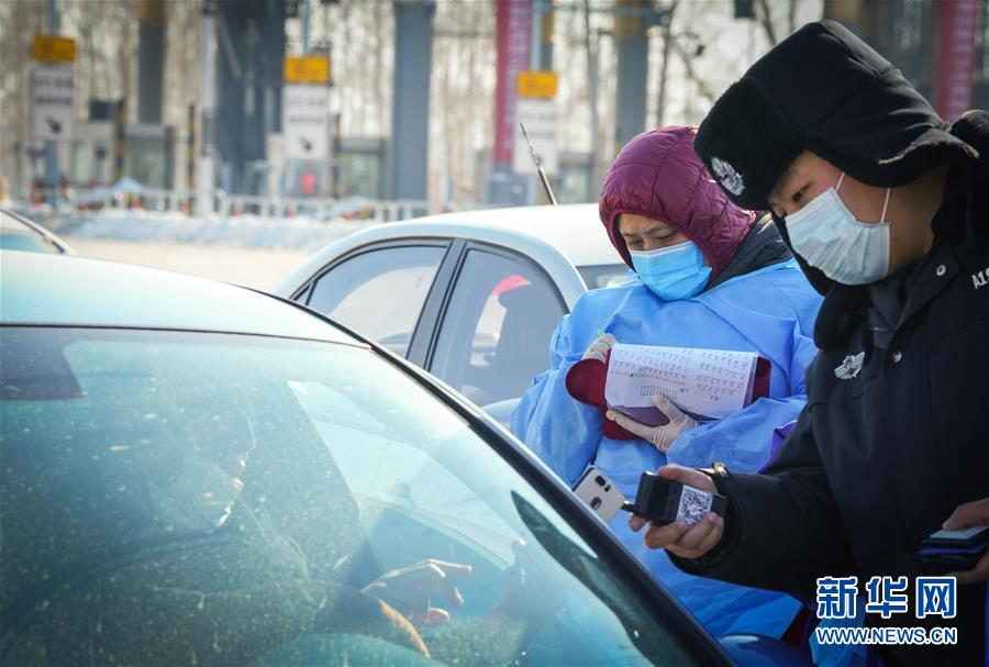 2月24日,工作人員在哈同高速公路哈爾濱收費站為車輛人員登記。 新華社記者 王松 攝