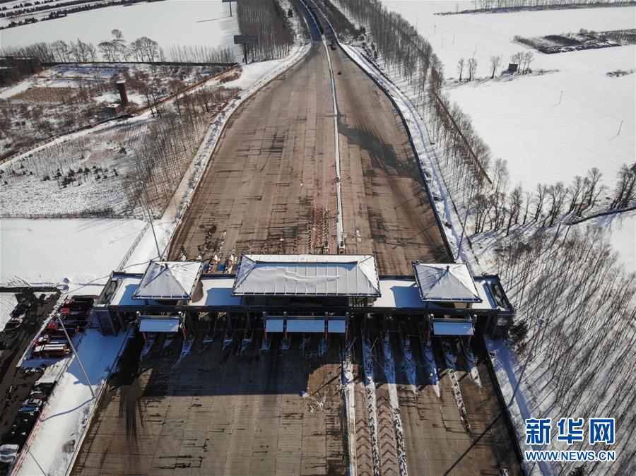 2月24日,哈牡高速公路哈爾濱收費站重新開放(無人機照片)。 新華社記者 王松 攝