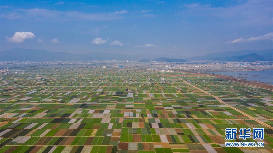 時下正值農(nóng)忙時節(jié),云南省玉溪市通??h的農(nóng)作物長勢喜人,山巒、湖水與農(nóng)田組成了一幅美麗的田園詩畫卷。