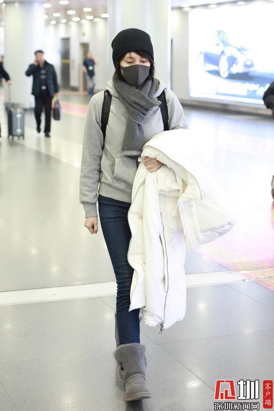 2019年1月5日,北京,袁泉現(xiàn)身機(jī)場。