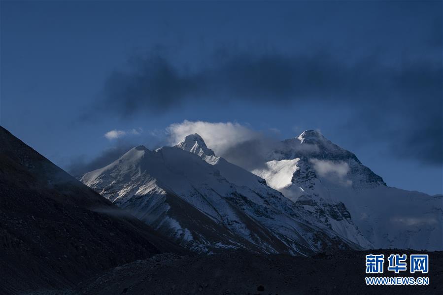 日出時(shí),珠峰籠罩在云霧里(4月28日攝)。新華社記者晉美多吉攝