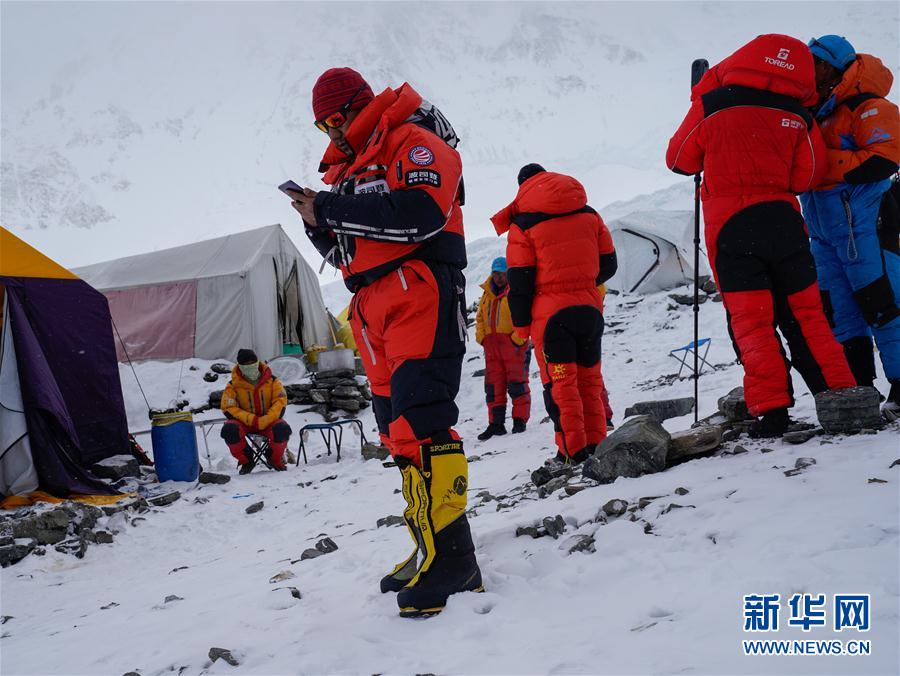 5月7日,2020珠峰高程測量登山隊進(jìn)駐海拔6500米的前進(jìn)營地。新華社特約記者扎西次仁攝