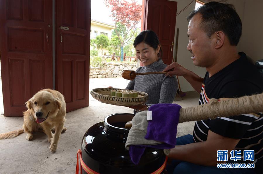 5月14日,在貴州省畢節(jié)市百里杜鵑管理區(qū)黃泥鄉(xiāng)龍?zhí)链逡患揖谱鞣?,兩位村民在觀察蒸餾出酒。貴州省畢節(jié)市百里杜鵑管理區(qū)黃泥鄉(xiāng)龍?zhí)链宓凝執(zhí)凉啪疲颡?dú)特的古法釀酒技術(shù),口感獨(dú)特而遠(yuǎn)近聞名。全村有釀酒戶142戶,年產(chǎn)量達(dá)45萬多公斤,龍?zhí)凉啪七h(yuǎn)銷重慶、廣東、浙江等地,龍?zhí)凉啪埔殉蔀辇執(zhí)寥嗽鍪盏闹匾獊碓?。新華社記者楊楹攝