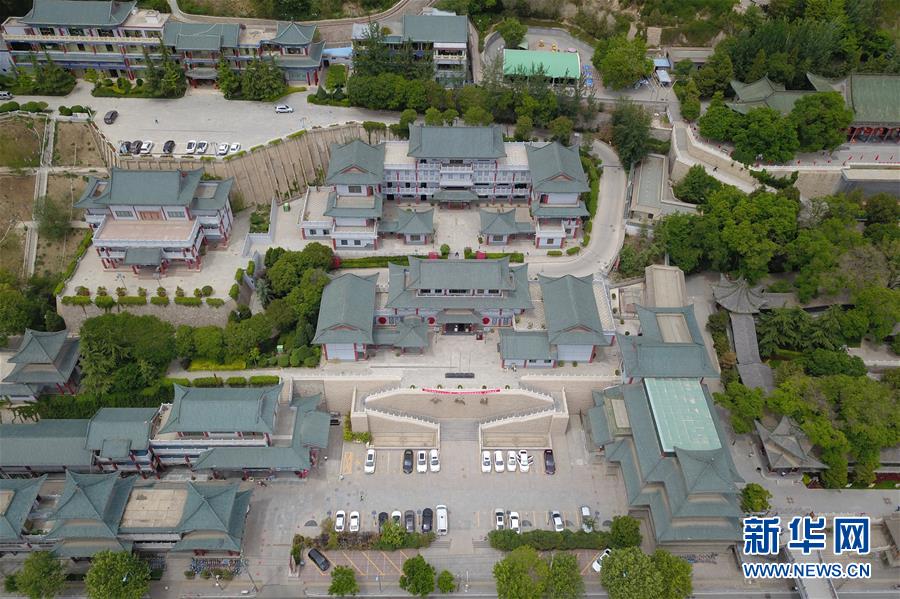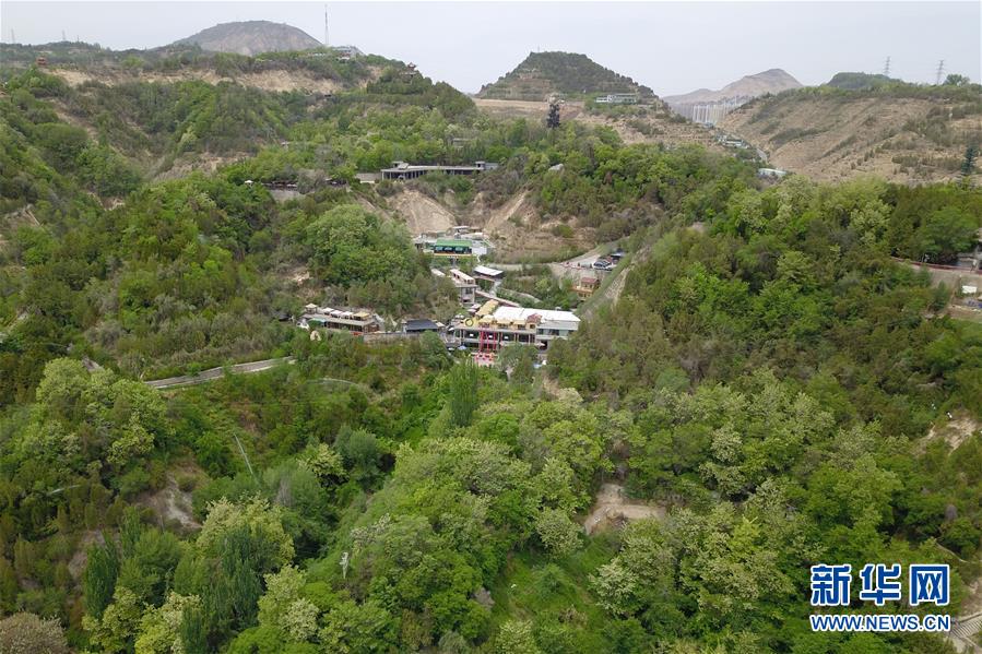 這是5月18日在蘭州市城關(guān)區(qū)拍攝的皋蘭山下五泉山公園初夏景象(無人機照片)。