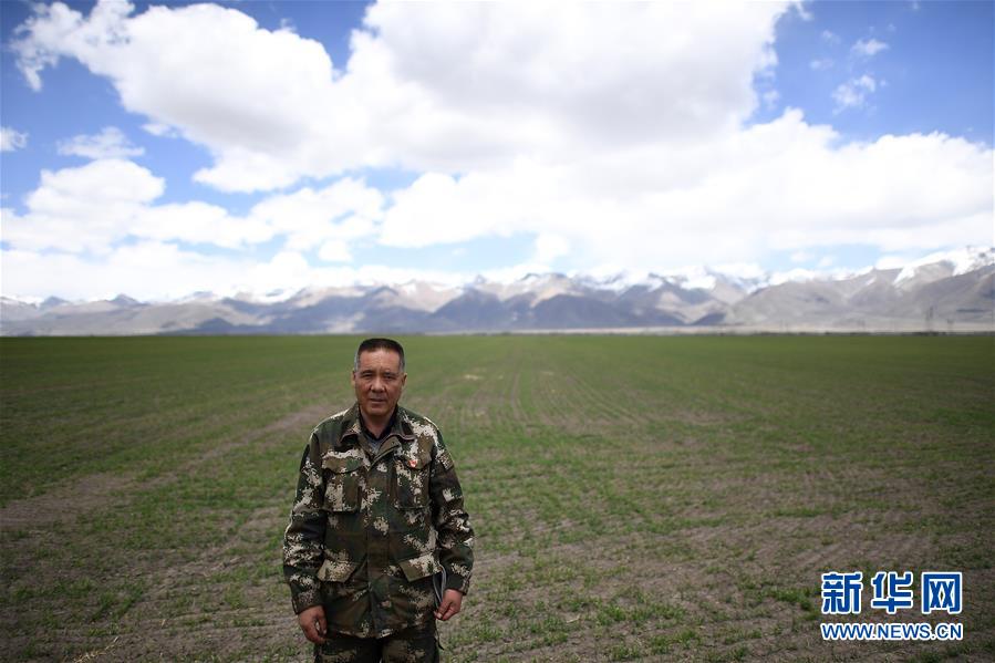 在青海省海北藏族自治州門(mén)源回族自治縣,青海省三江集團(tuán)門(mén)源種馬場(chǎng)生產(chǎn)科科長(zhǎng)馬文軍在青稞地里(5月16日攝)。新華社記者張宏祥攝
