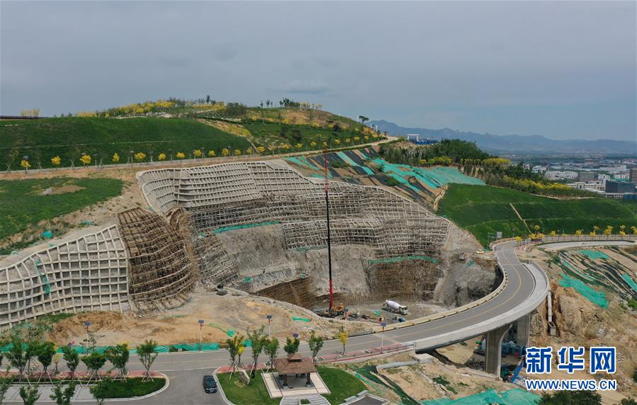 5月25日拍攝的秦皇島經濟技術開發(fā)區(qū)棲云山生態(tài)修復工程工地(無人機照片)。新華社記者楊世堯攝