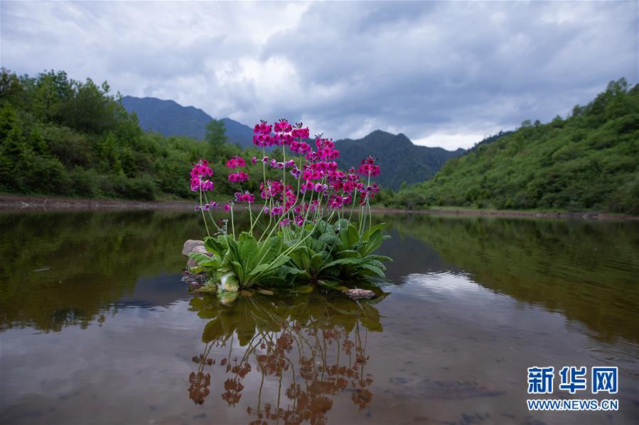 在四川省漢源縣桌子山,幾株報(bào)春花生長(zhǎng)在水中(5月24日攝)。新華社記者江宏景攝