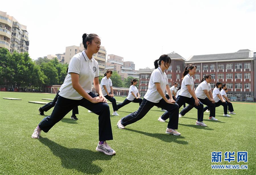 5月28日,北京市第十八中學(xué)初三年級的學(xué)生在體育課上做準(zhǔn)備活動。北京市第十八中學(xué)共有初三年級學(xué)生340余名,學(xué)校在做好初三年級學(xué)生中考文化課備考的同時,加強(qiáng)學(xué)生心理及身體素質(zhì)的鍛煉,以最好的精神狀態(tài)備戰(zhàn)中考。據(jù)悉,2020年北京中考報名人數(shù)為7.5萬人,比去年增加25%。新華社記者任超攝