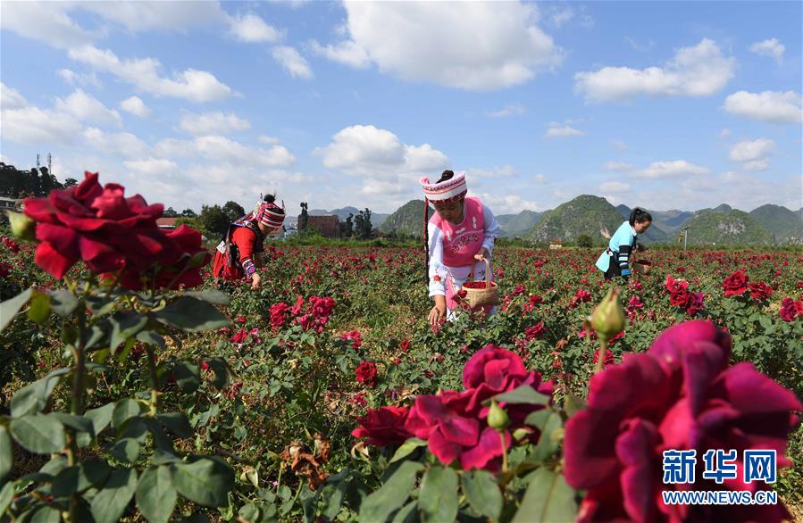 6月2日,云南丘北縣八道哨鄉(xiāng)阿諾村的少數(shù)民族婦女在種植基地采摘食用玫瑰花。云南省文山壯族苗族自治州丘北諾香花卉農(nóng)業(yè)科技開發(fā)有限公司自2016年以來發(fā)展食用玫瑰花種植1200畝,集生產(chǎn)加工、銷售玫瑰花系列產(chǎn)品及旅游觀光于一體,帶動(dòng)當(dāng)?shù)?00多戶群眾脫貧增收。新華社記者楊宗友攝