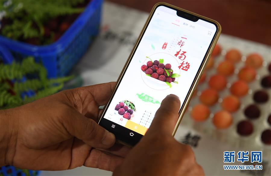 6月3日,在上虞區(qū)驛亭鎮(zhèn),舜利水晶楊梅專(zhuān)業(yè)合作社果農(nóng)在查看自己的電商平臺(tái)楊梅銷(xiāo)售頁(yè)面。近日,浙江紹興上虞區(qū)二都楊梅開(kāi)采。楊梅是上虞區(qū)傳統(tǒng)特色農(nóng)產(chǎn)品,目前上虞區(qū)二都楊梅種植面積1651公頃,年產(chǎn)量1.1萬(wàn)噸,2019年二都楊梅成功申報(bào)國(guó)家農(nóng)產(chǎn)品地理標(biāo)志認(rèn)證。新華社記者翁忻旸攝。