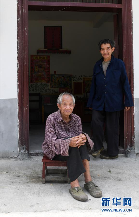 在廣西環(huán)江毛南族自治縣下南鄉(xiāng)下塘村上眉屯,譚廣田(右)和父親譚運日在家門口(5月23日攝)。新華社記者陸波岸攝。