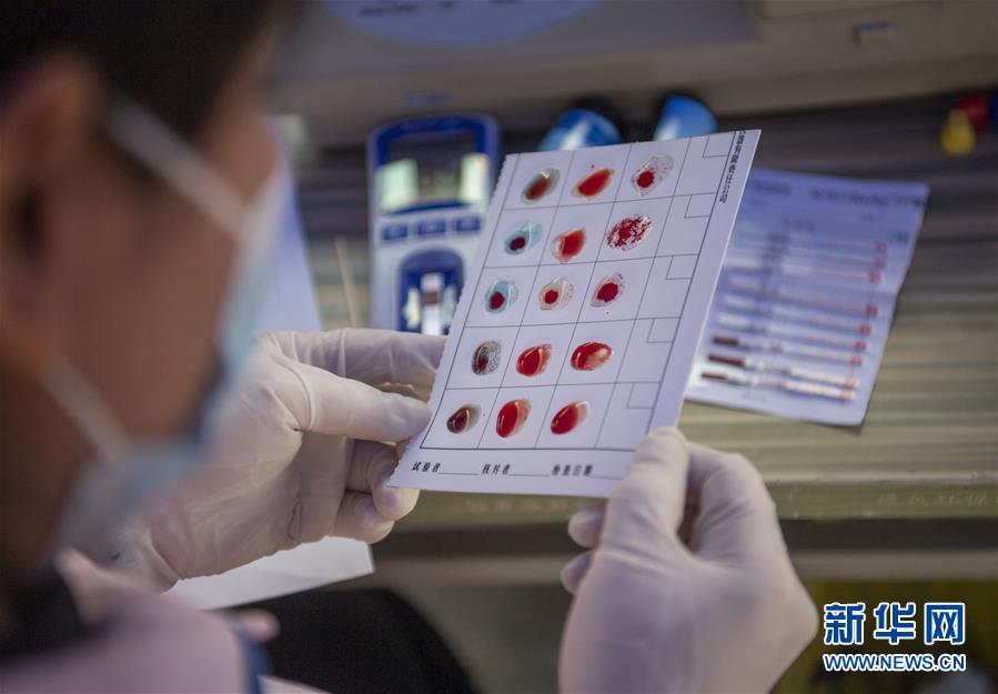 6月14日,在拉薩市宇拓路的獻(xiàn)血點(diǎn),西藏自治區(qū)血液中心的工作人員在給獻(xiàn)血者的血液樣本進(jìn)行血型檢測(cè)。當(dāng)日是世界獻(xiàn)血者日。為宣傳無(wú)償獻(xiàn)血相關(guān)知識(shí)、傳播無(wú)償獻(xiàn)血公益理念,世界獻(xiàn)血者日宣傳和采血活動(dòng)在拉薩市舉辦。新華社記者 孫非 攝