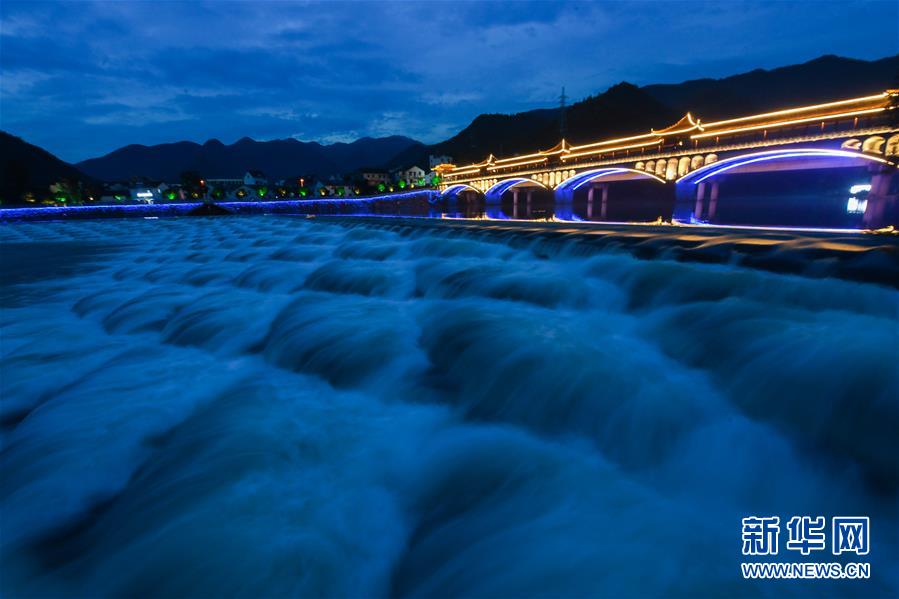 6月27日拍攝的夜色中的杭州市富陽區(qū)湖源鄉(xiāng)龍鱗壩。近期,浙江省杭州市富陽區(qū)場口鎮(zhèn)、常安鎮(zhèn)和湖源鄉(xiāng)組團(tuán)開啟了一場夏季“綠水青山嘉年華”。這幾個壺源溪流域鄉(xiāng)鎮(zhèn)整合生態(tài)旅游資源,組團(tuán)開發(fā)山村旅游項(xiàng)目,游客可以參與壺源溪水上游樂、露營永安山頂、特色農(nóng)產(chǎn)品集市和瓜果節(jié)等特色活動。新華社記者徐昱攝