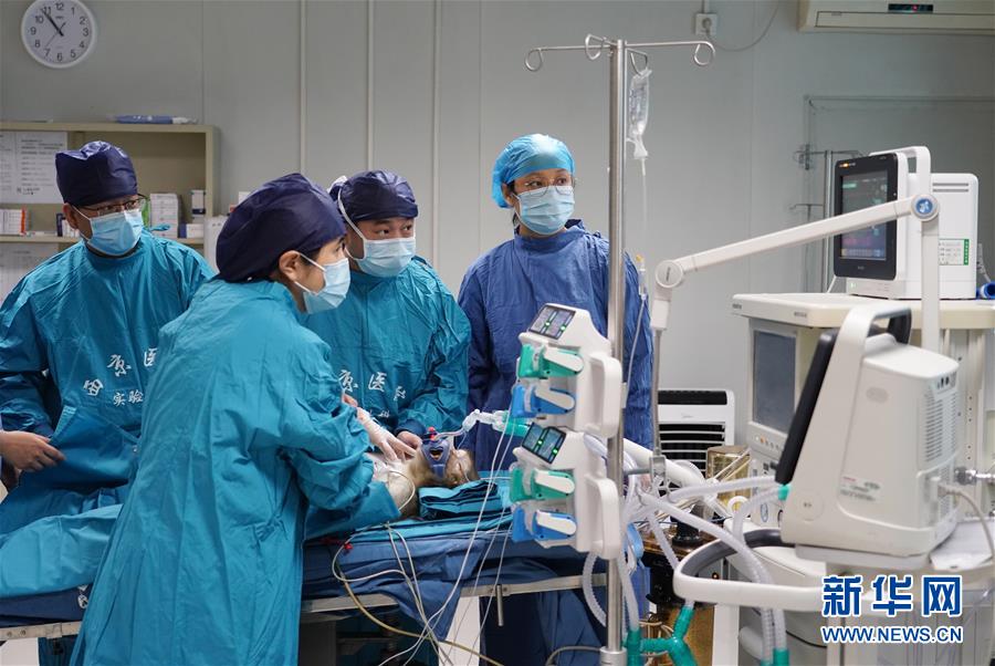 6月29日,醫(yī)護(hù)人員在病房內(nèi)查看移植肝受體猴的體征。日前,多基因編輯豬-恒河猴異種肝、心、腎器官移植在位于陜西西安的空軍軍醫(yī)大學(xué)西京醫(yī)院順利實施。研究團(tuán)隊使用豬內(nèi)源性逆轉(zhuǎn)錄病毒(PERV)敲除的13個基因修飾豬作為供體,將一個供體豬的肝、心、腎分別移植給3只恒河猴受體。目前,移植肝和對應(yīng)的受體猴已存活16天,突破國際上的豬-猴輔助性肝移植最長存活時間記錄。這項研究有助于未來解決器官短缺造成的臨床器官移植發(fā)展受限難題。新華社記者邵瑞攝
