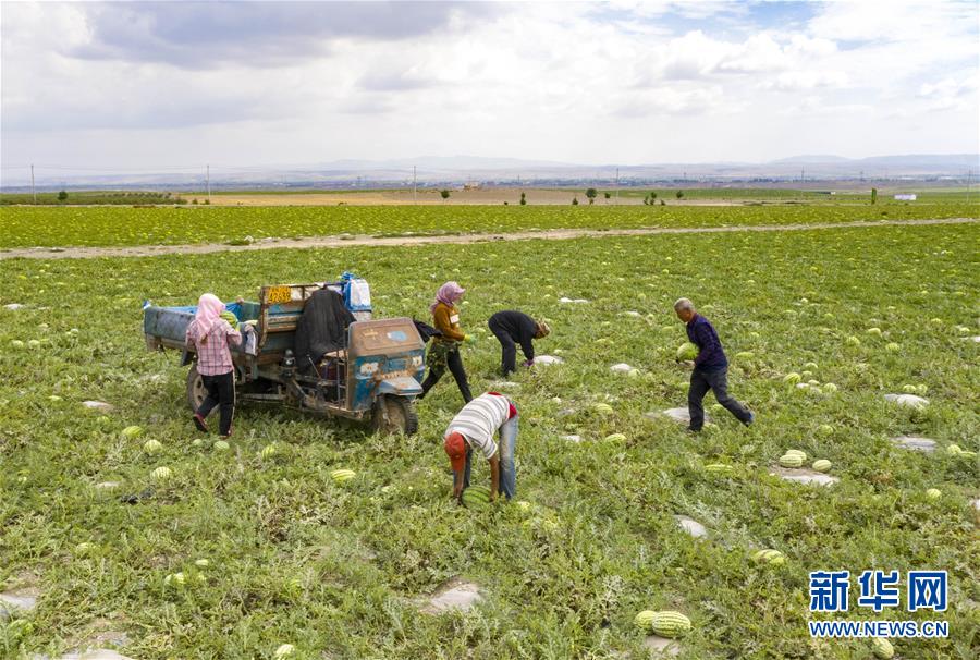 7月16日,在寧夏中衛(wèi)市香山鄉(xiāng)硒砂瓜萬畝示范基地,瓜農(nóng)在采收硒砂瓜。近日,寧夏中衛(wèi)市迎來硒砂瓜豐收季。硒砂瓜是中衛(wèi)市的特色農(nóng)產(chǎn)品,近年來,當(dāng)?shù)夭扇〖夹g(shù)創(chuàng)新、規(guī)模化種植、休耕輪作等多項(xiàng)舉措,讓硒砂瓜種植成為當(dāng)?shù)剞r(nóng)民增收致富的重要產(chǎn)業(yè)。據(jù)了解,今年中衛(wèi)市硒砂瓜種植面積為69.7萬畝。新華社記者楊植森攝
