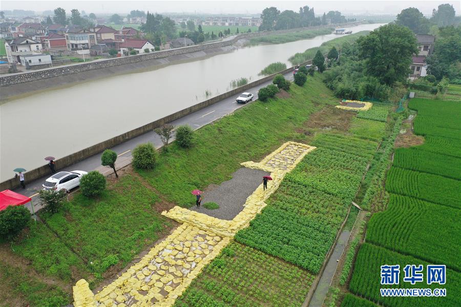 在揚(yáng)中市何家大港閘外通江堤防,巡堤員在用“反濾圍井”方式處理過的滲水處巡查(7月17日攝,無人機(jī)照片)。捆蘆葦護(hù)邊坡、機(jī)器人進(jìn)涵洞、“養(yǎng)水盆”防滲漏……在江蘇鎮(zhèn)江,當(dāng)?shù)馗刹咳罕姾蛯I(yè)力量,因地制宜就地取材,老辦法搭配新技術(shù),一批險(xiǎn)情得以消除在萌芽狀態(tài)。新華社記者季春鵬攝