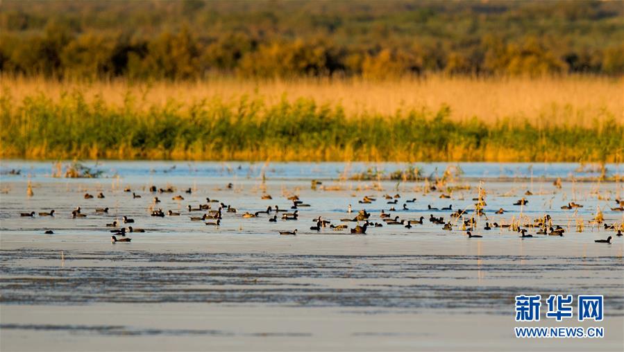 7月28日,成群候鳥在桃力廟—阿拉善灣海子覓食。鄂爾多斯?jié)竦匚挥趲?kù)布齊沙漠、毛烏素沙地接壤地帶,2002年被列入國(guó)際重要濕地名錄。從2006年開始,由于濕地湖面萎縮、湖心島消失,在此筑巢繁殖的世界瀕危物種遺鷗幾近消失。近年來,當(dāng)?shù)夭扇《喾N治理措施,濕地生態(tài)環(huán)境逐步好轉(zhuǎn)。2019年起,濕地內(nèi)的桃力廟—阿拉善灣海子迎來遺鷗大規(guī)?!盎貧w”。如今,40多種鳥類在此棲息,鄂爾多斯?jié)竦刂匦鲁蔀轼B類的樂園。新華社記者連振攝