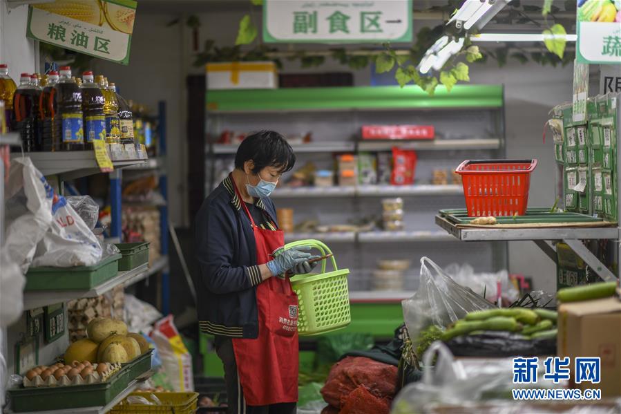 7月30日,在烏魯木齊經(jīng)濟技術(shù)開發(fā)區(qū)(頭屯河區(qū))天鵝湖社區(qū)一家超市,商販按照住戶的訂單配送果蔬。新華社記者趙戈攝