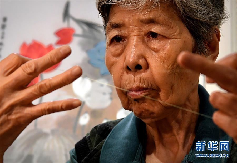 “一針一線繡人生,一心一意做好人?!痹诤幽祥_封市素花宋繡工藝有限公司的展示館里,85歲的王素花一邊劈線一邊講述自己的故事。