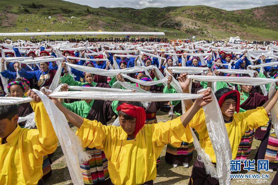 8月7日,在西藏首屆弦子舞展演現(xiàn)場,演出人員在表演弦子舞。當日,西藏首屆弦子舞展演在昌都市芒康縣舉行。眾多演員同臺獻藝,表演國家級非物質文化遺產弦子舞,吸引西藏各地的群眾前來觀看。新華社記者孫非攝