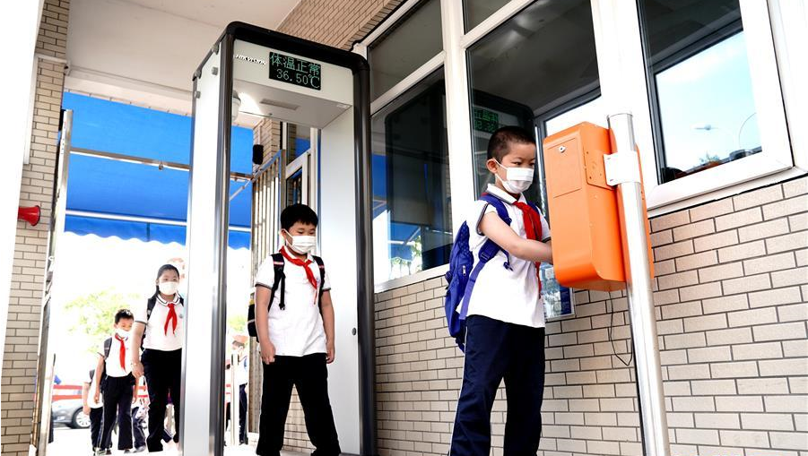 6月2日,上海閔行區(qū)鑫都小學(xué)的學(xué)生走進校園。