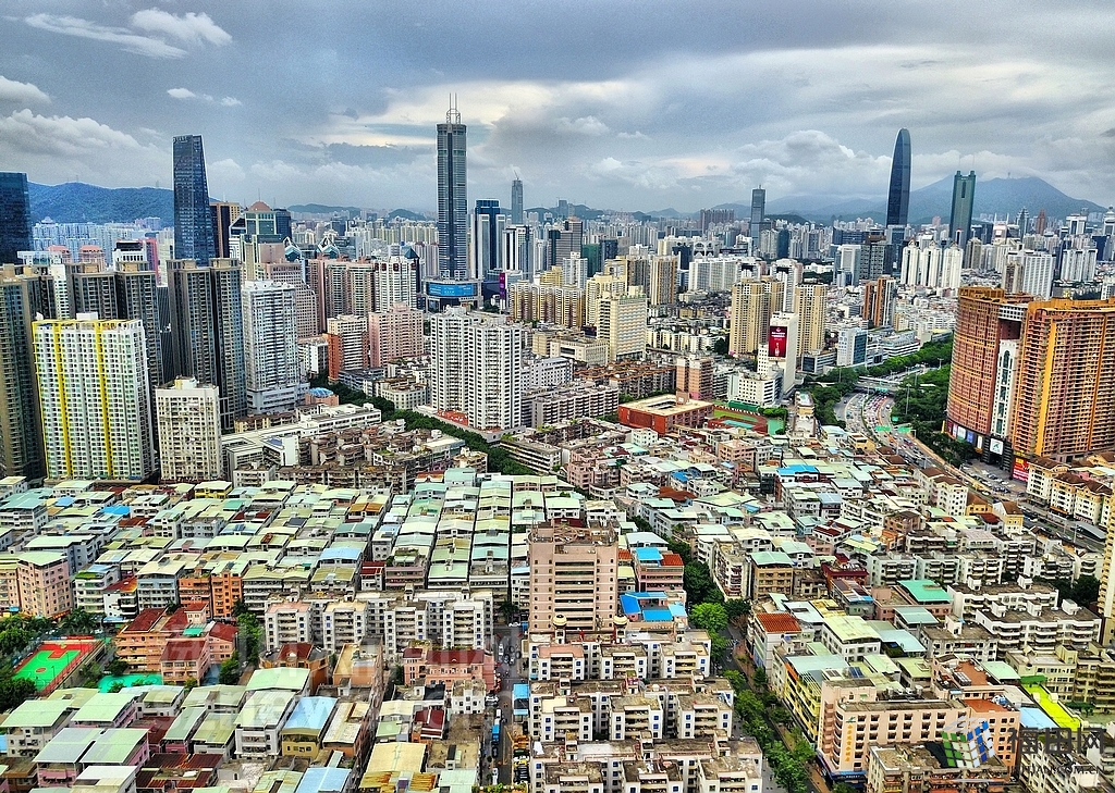 8月30日下午,記者通過無人機的視角看到,福田區(qū)許多地標(biāo)性建筑物在灰霾的籠罩下顯得“猶抱琵琶半遮面”,不能以“全面目”示人。