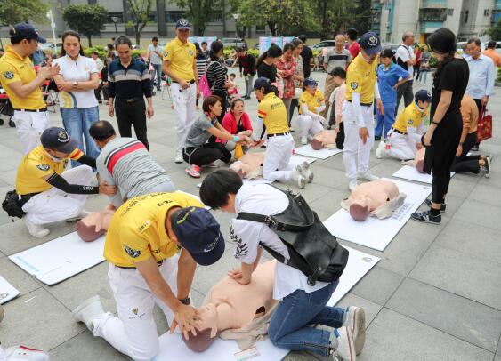 深圳市賽場救護隊的專業(yè)人員在現(xiàn)場為蓮花一村的社區(qū)居民普及了大眾急救技能,并指導大家進行模擬心肺復蘇的演練,中老年朋友則享受了免費的體質檢測服務。
