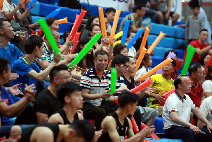圖3:深圳業(yè)余籃球氛圍濃厚,現(xiàn)場(chǎng)觀眾為球隊(duì)加油。
