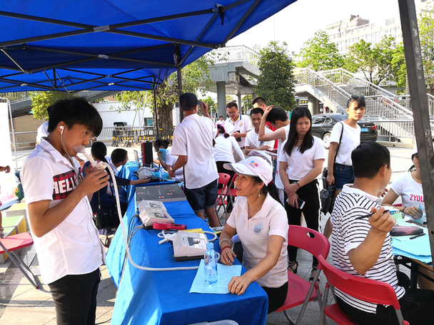 本次《大講堂》活動(dòng)走進(jìn)觀(guān)瀾福誠(chéng)街道章閣社區(qū),向社區(qū)居民傳遞健康。白衣天使們不顧炎熱的天氣,用肺活量測(cè)試儀、握力測(cè)試儀、縱跳計(jì)測(cè)試儀等設(shè)備為社區(qū)居民進(jìn)行免費(fèi)體測(cè);深圳獅子會(huì)代繼宏先生現(xiàn)場(chǎng)為大家進(jìn)行了糖尿病預(yù)防知識(shí)的宣教。據(jù)悉,深圳獅子會(huì)致力于關(guān)愛(ài)社區(qū)群眾,傳遞健康環(huán)保知識(shí),為社區(qū)居民舉辦健康大講堂,推動(dòng)健身熱潮,并組織社區(qū)居民進(jìn)行體質(zhì)監(jiān)測(cè)等多種形式的知識(shí)宣講,促進(jìn)社區(qū)和諧建設(shè)。