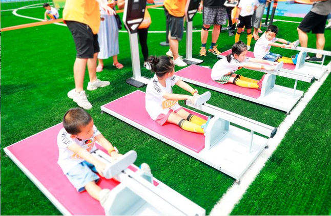 而在環(huán)球足球挑戰(zhàn)環(huán)節(jié),許多小選手是第一次接觸足球。通過數(shù)碼感應(yīng)裝置和小選手們佩戴的智能手環(huán),將帶球、頂球、射門等足球動(dòng)作實(shí)時(shí)反饋呈現(xiàn)運(yùn)動(dòng)結(jié)果,其樂無窮的項(xiàng)目讓孩子們一一挑戰(zhàn)停不下來!