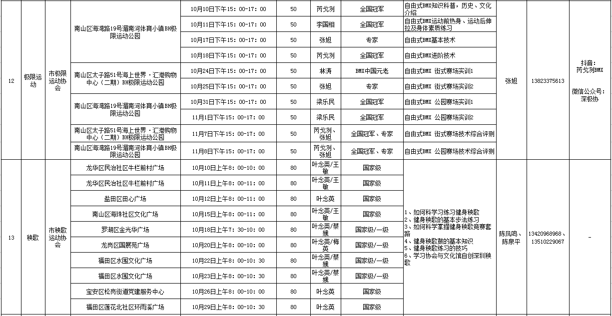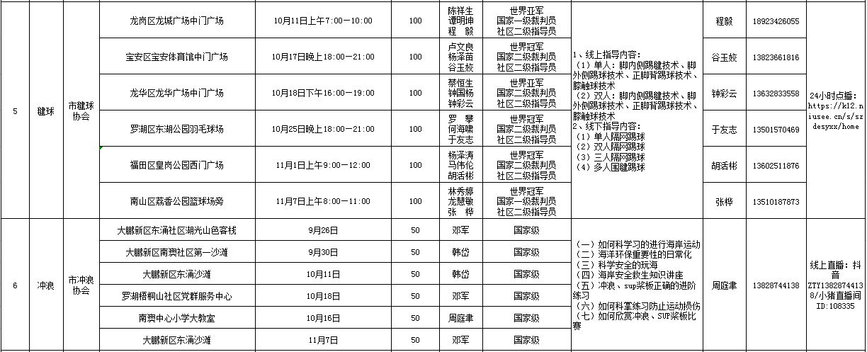 “科學(xué)健身指導(dǎo)活動(dòng)”由深圳市文化廣電旅游體育局主辦,旨在通過分批、分點(diǎn)等方式,在做好疫情防控的同時(shí),針對(duì)不同人群進(jìn)行戶外健身運(yùn)動(dòng)個(gè)性化指導(dǎo)服務(wù),助力全市煥發(fā)新活力,促進(jìn)全民健身高質(zhì)量發(fā)展。活動(dòng)自8月2日啟動(dòng)以來,已有眾多一線社會(huì)體育指導(dǎo)員和體育產(chǎn)業(yè)專家通過深入社區(qū)現(xiàn)場(chǎng)教學(xué)、錄制視頻等方式,向廣大市民宣傳、講解科學(xué)健身的知識(shí)和方法。