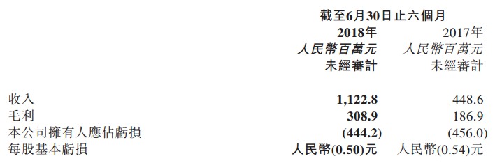 而伴隨這些動(dòng)作之余,該公司2018年中期的業(yè)績(jī)也進(jìn)步好轉(zhuǎn)。期內(nèi),該收入同比增長(zhǎng)150.3%至11.23億元人民幣(單位下同);毛利同比增長(zhǎng)65.3%至3.09億元;股東應(yīng)占虧損同比收窄2.6%至4.44億元。